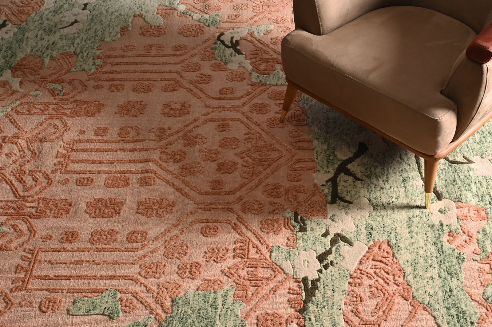 The skilfully woven Salmon-Pink Tide creates a story of freshness and feminity. The delicately pink flowers is a breath of fresh air in the room like a harbinger of spring. Painstakingly hand-knotted with the softest and purest wool, the rug’s delightful and luxuriant texture has pink blossoms adapted from Asian cultures.