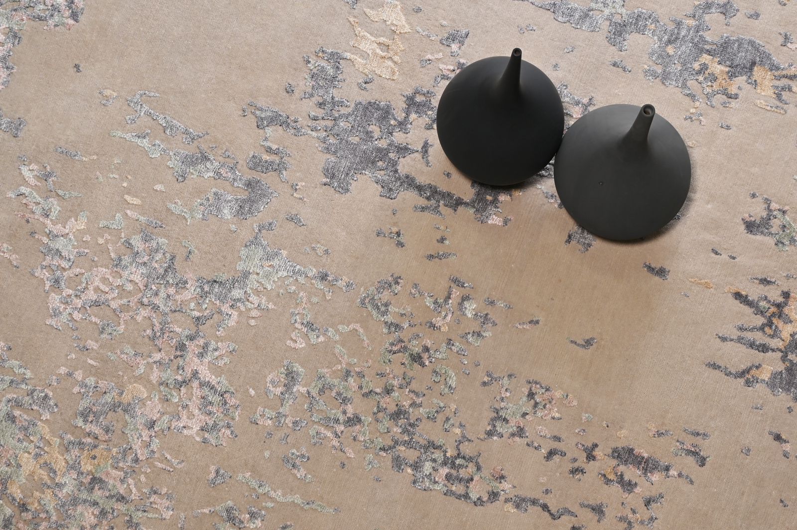 Wistful Latte’s modern, contemporary look is created from the ancient traditional rug making techniques practiced by generations of our craftspeople. Hand-knotted in Bamboo silk, the pink beige islands on a taupe surface flow into each other with subtle shimmers. A cynosure of all eyes, the rug makes a quiet artistic statement.